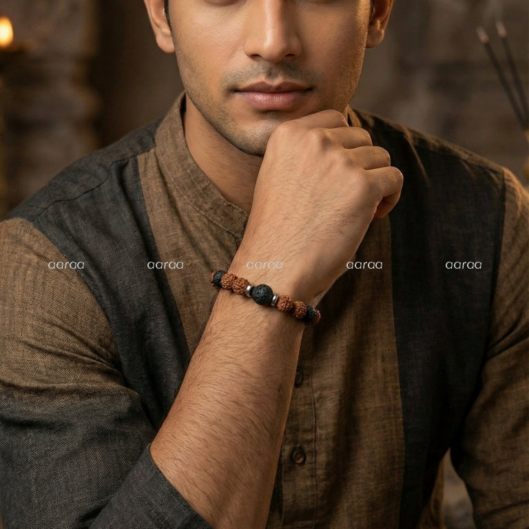 Rudraksha with Lava - The Sacred Fusion Bracelet