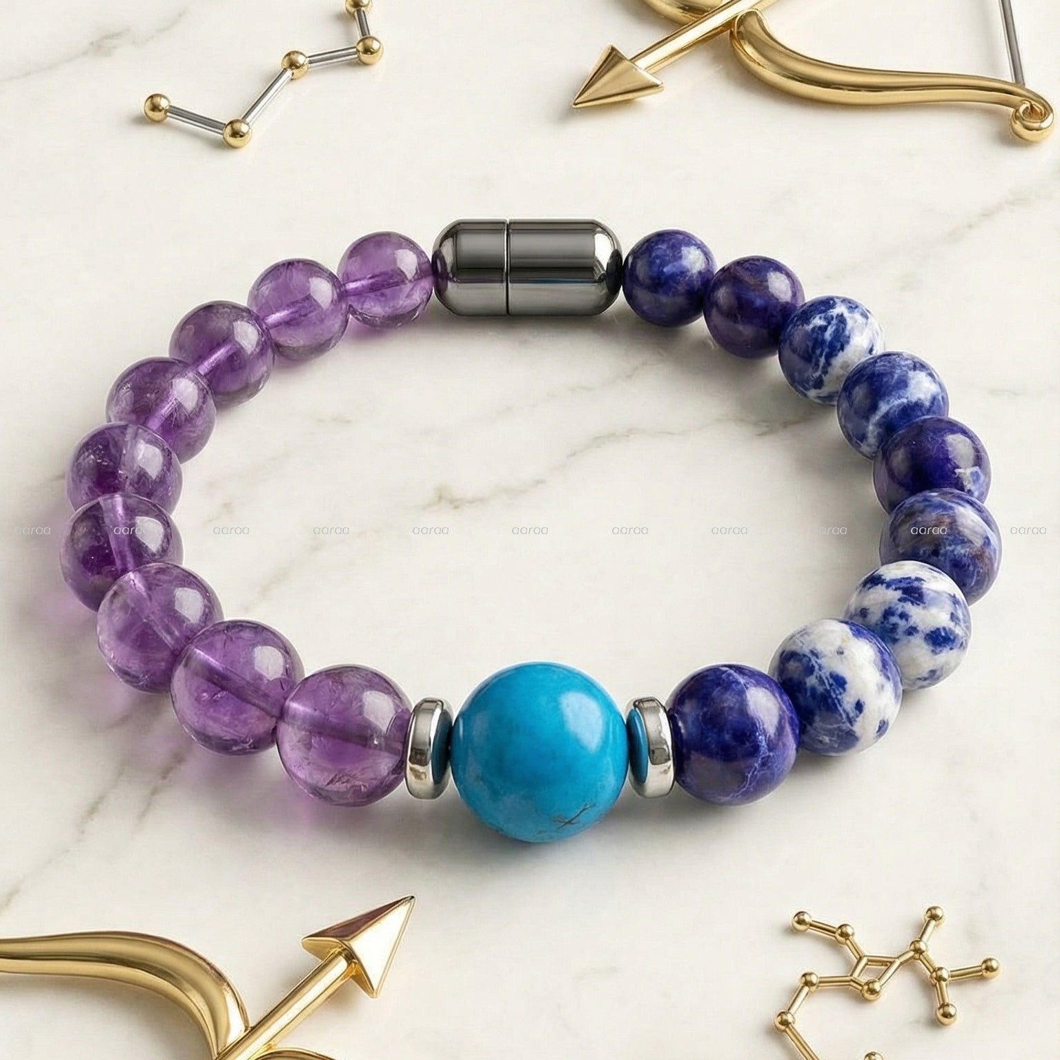 This bracelet is ideal for Sagittarius individuals seeking wisdom, truth, confident communication, and mental clarity.