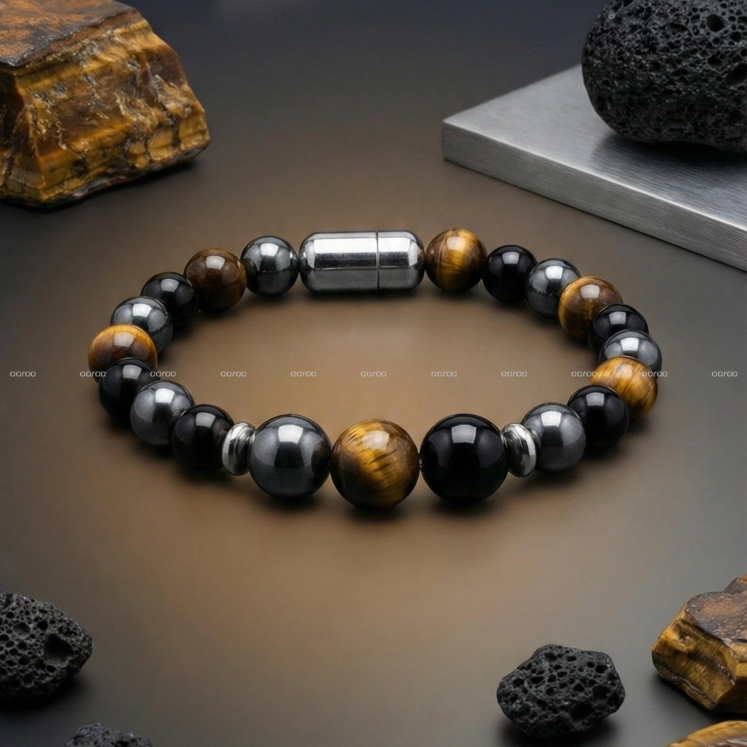 Black Tourmaline protects from negativity, Tiger Eye builds confidence and courage, and Hematite provides grounding and emotional balance.
